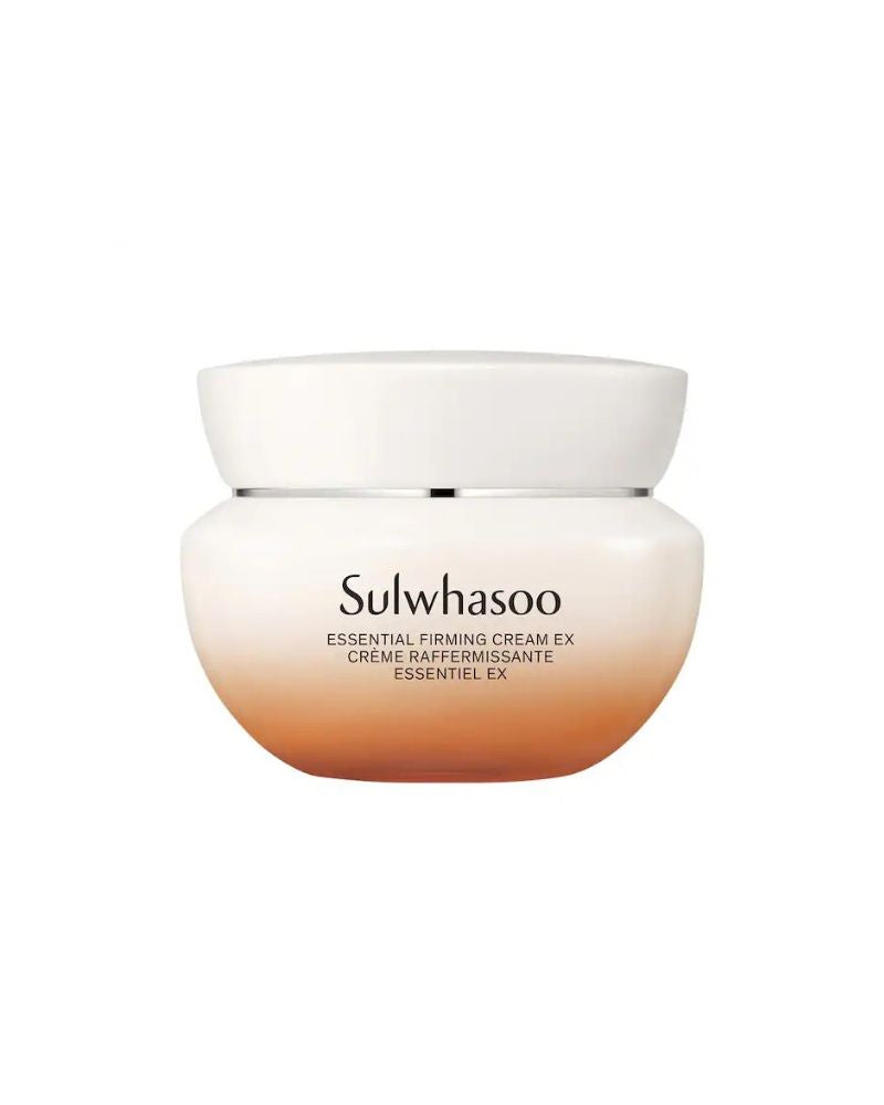 Sulwhasoo Essential Firming Cream EX 75ml is a rich, whipped Korean herbal cream that deeply hydrates, firms, and smooths skin, targeting early aging signs like dryness and loss of elasticity with its JISUN Firming Complex (goji berries, black beans, arrowroot) and JAUM Activator, creating a plump, youthful, and radiant look with lasting moisture and barrier support.